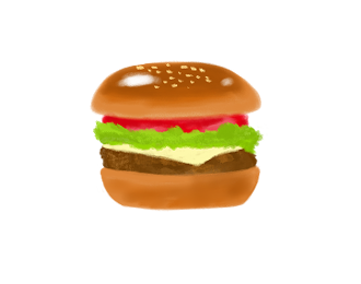 ジューシーなパテとたっぷり野菜のハンバーガーを食べれば持ち前のパワーがさらにアップ♪