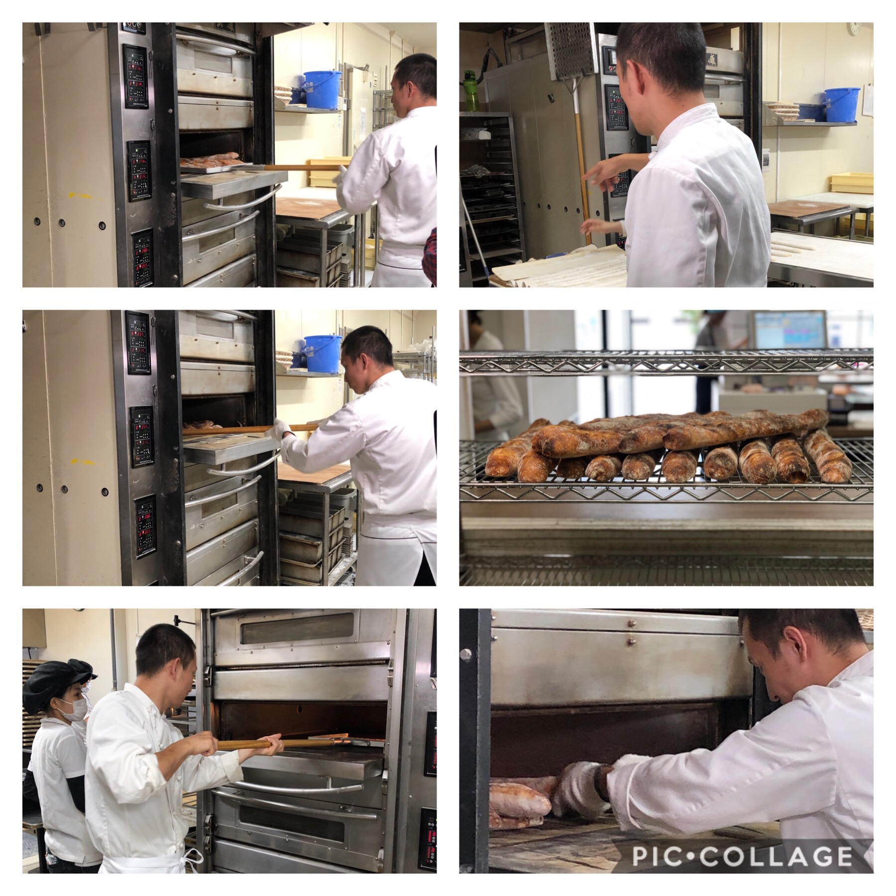私が見たのは、キャンパス地に成形されたバゲットがずらりと並び、そして数分待機してからいよいよ釜からバゲット取り出す瞬間、大きなシャベルのようなものでシェフはさらっと取り出していきその手早さは音楽のようにリズミカル。