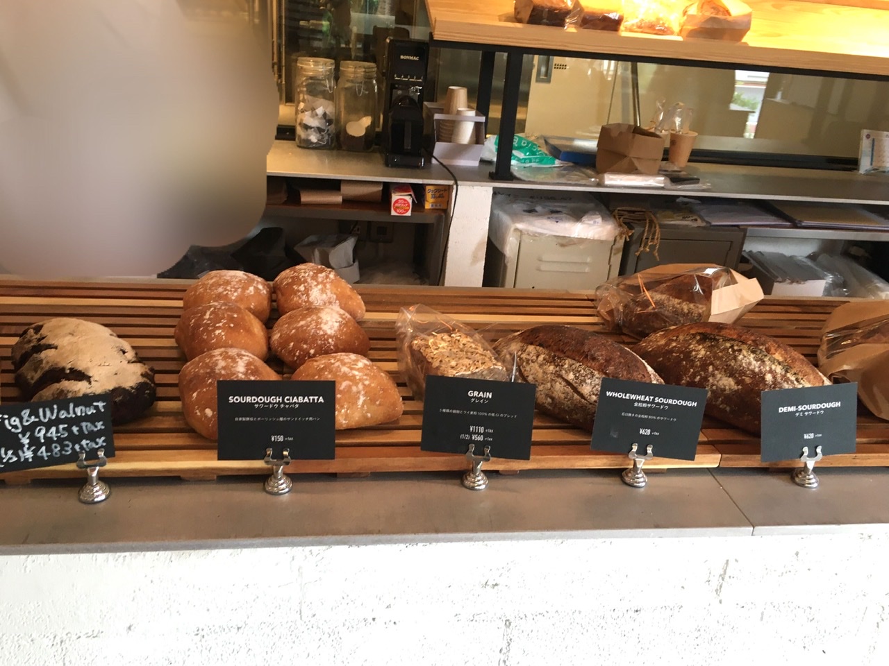 お店に入ると、右手にパンコーナーがあります。大きめのシンプルなハード系パンが中心。